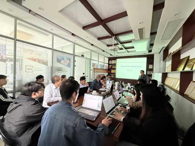 培訓(xùn)中,沈老師簡(jiǎn)要介紹了本次培訓(xùn)的目的,并結(jié)合氣體設(shè)備市場(chǎng),重點(diǎn)介紹了常溫空氣分離工藝基礎(chǔ)知識(shí)、常溫空氣分離(變壓吸附及膜)工藝及設(shè)備、碳分子篩及變壓吸附制氮技術(shù)、壓縮空氣膜干燥工藝及設(shè)備等知識(shí),通過深入淺出的現(xiàn)場(chǎng)講解和提問方式,鼓勵(lì)學(xué)員們主動(dòng)思考、積極發(fā)言。
