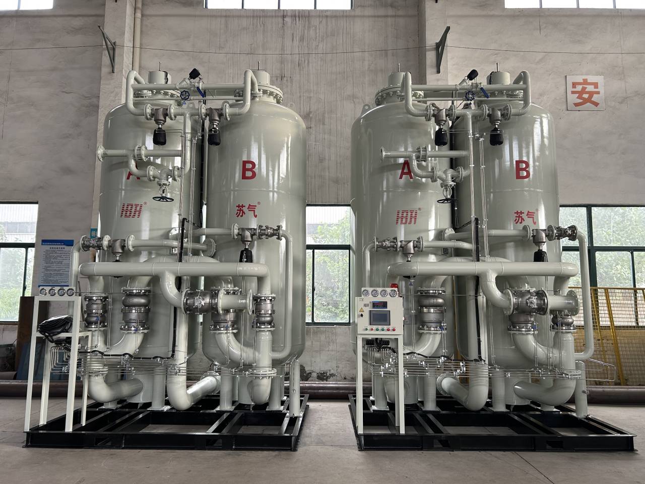 2、氮氣純度調(diào)整方便,氮氣純度只受氮氣排氣量的影響,普通制氮純度在95%-99.99%之間任意調(diào)節(jié);高純度制氮機可在99%-99.999%之間任意調(diào)節(jié)。