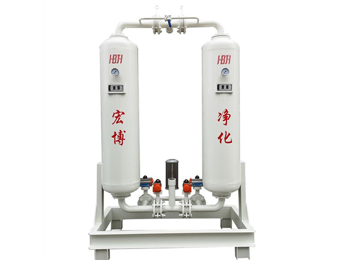 無熱吸附式干燥機是利用變壓吸附的原理,使干燥機在管網(wǎng)壓力下吸附,然后在切換到大氣壓下脫附,并從干燥機出口引回約12-14%的干燥成品氣對干燥劑進一步凈化再生。雙塔交替進行以上過程,向用氣點提供干燥的壓縮空氣。